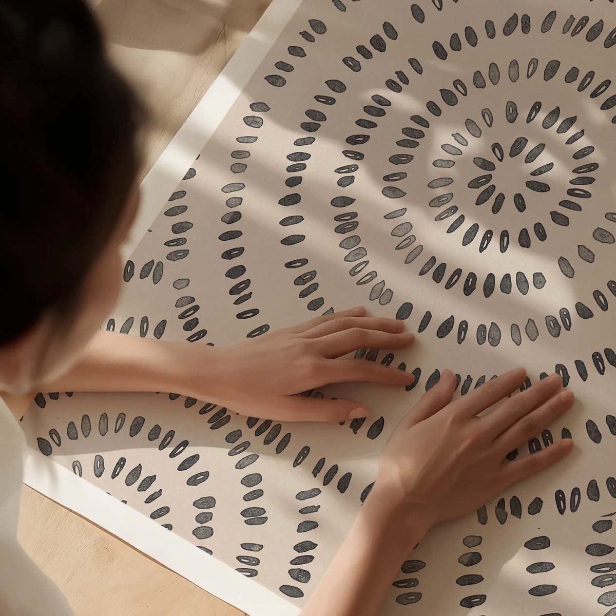 Elevate your home with this Abstract Dot Print, a stunning choice for minimalist living room decor. Featuring three overlapping circular patterns made of hand-drawn dots in shades of gray and black on a beige background, this artwork brings a subtle yet artistic vibe to your space. Because of its neutral tones, it seamlessly fits into various settings, such as a living room, bedroom, or cozy reading nook.