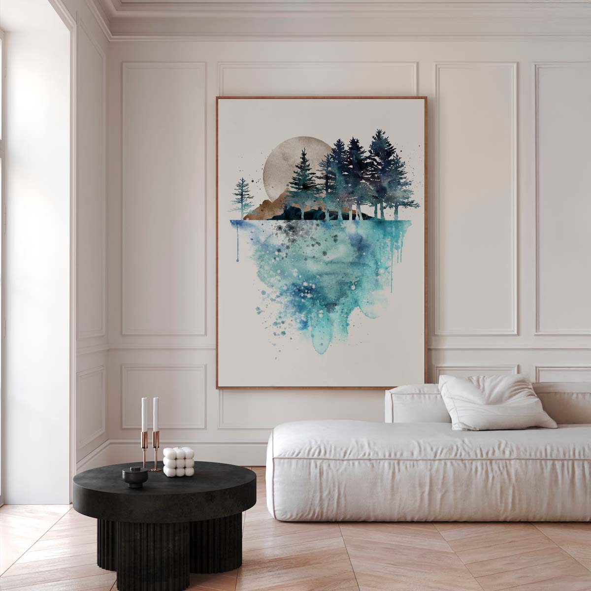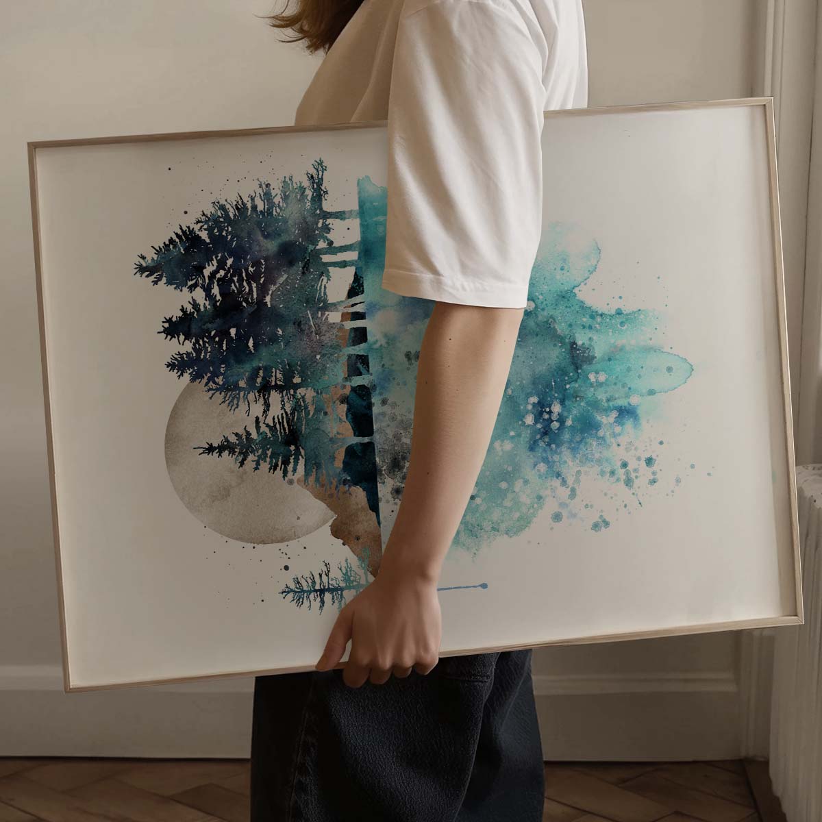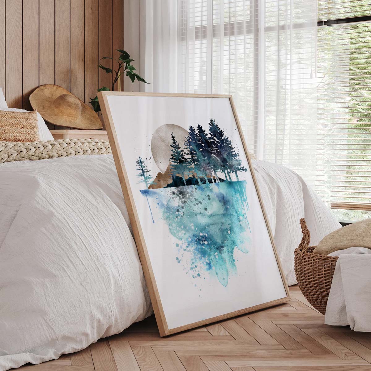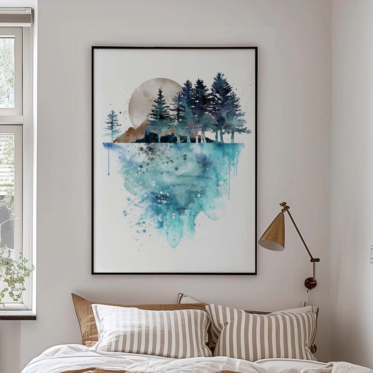Bring the beauty of the outdoors into your home with this Watercolor Landscape Poster, a perfect piece for nature-inspired homes. Featuring a serene watercolor scene of a forest, mountains, and a glowing moon reflecting on tranquil water, this print evokes a sense of calm and wonder. Consequently, it’s an ideal choice for those who love nature-themed decor or minimalist aesthetics. Whether you’re styling a peaceful bedroom, a cozy living room, or a serene meditation space, this artwork adds a touch of natural elegance to your walls. Moreover, its soft blue and earthy tones make it a seamless fit for Scandinavian or coastal-inspired interiors.
