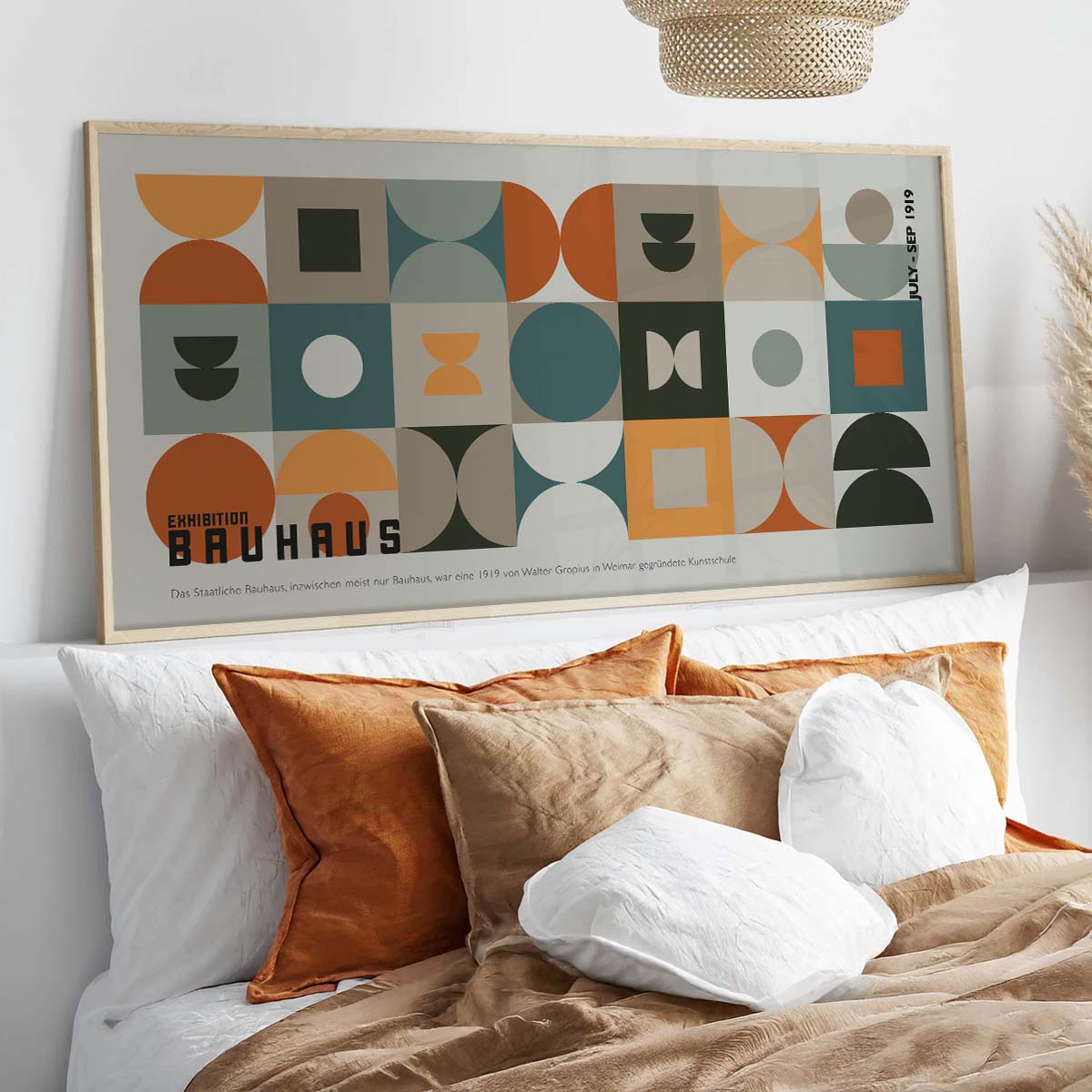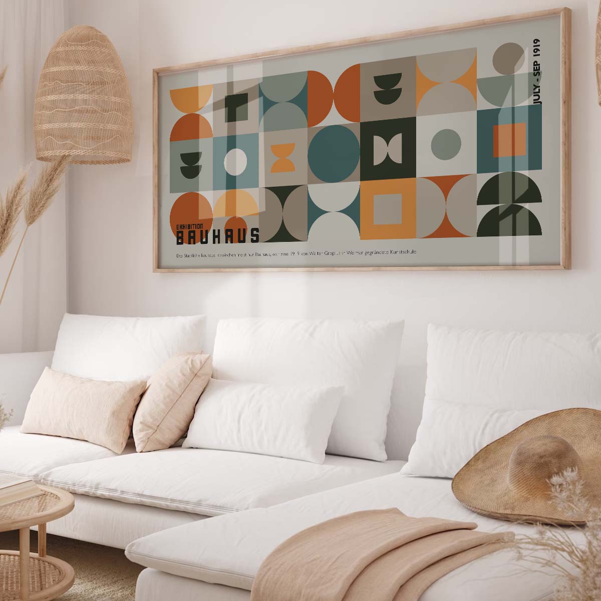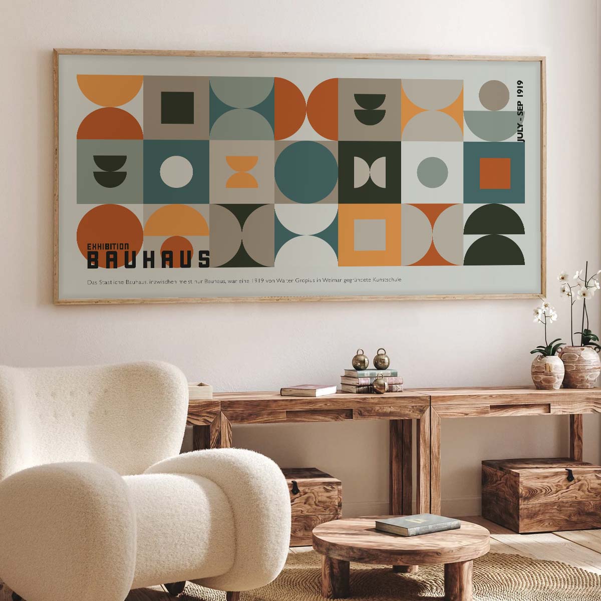 Moreover, the Bauhaus Geometric Art Print celebrates the 1919 Weimar founding of the Bauhaus school, as noted on the poster itself. Its clean lines and abstract forms make it a versatile piece for various aesthetics. For instance, it pairs beautifully with neutral tones or can serve as a focal point in a gallery wall setup. Additionally, this print is ideal for art lovers who appreciate the historical significance of the Bauhaus movement and its influence on modern design.