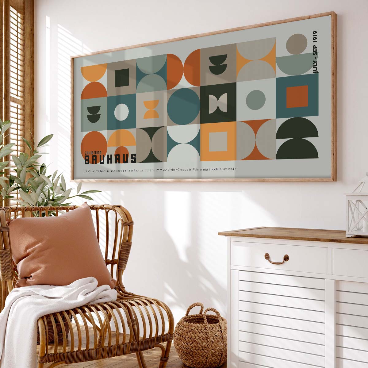 Elevate your home with this stunning Bauhaus Geometric Art Print, a perfect blend of history and modern design. Inspired by the iconic Bauhaus movement, this artwork features bold geometric shapes in a muted color palette of mustard, teal, and rust tones. Consequently, it effortlessly complements mid-century modern homes, minimalist interiors, or even bohemian-inspired spaces. Whether you’re decorating a living room, bedroom, or office, this print adds a sophisticated yet artistic touch to your walls.