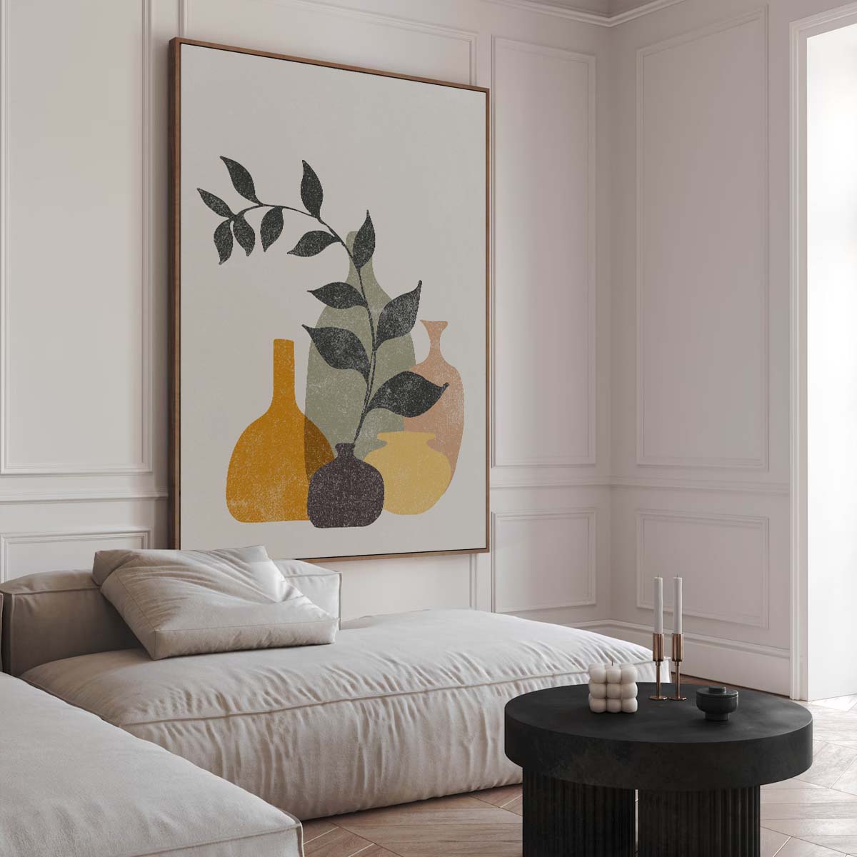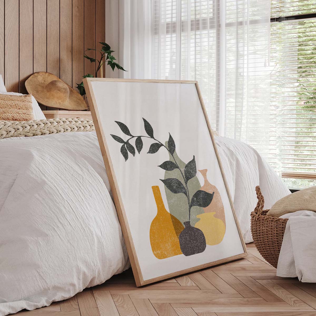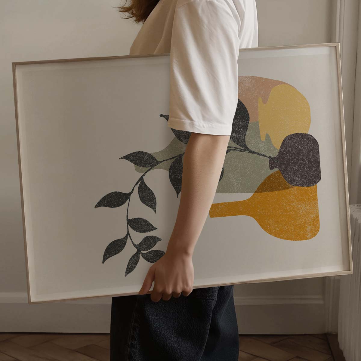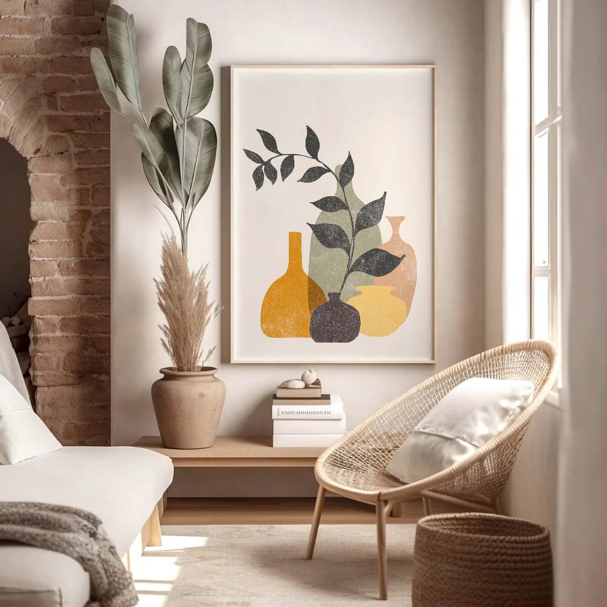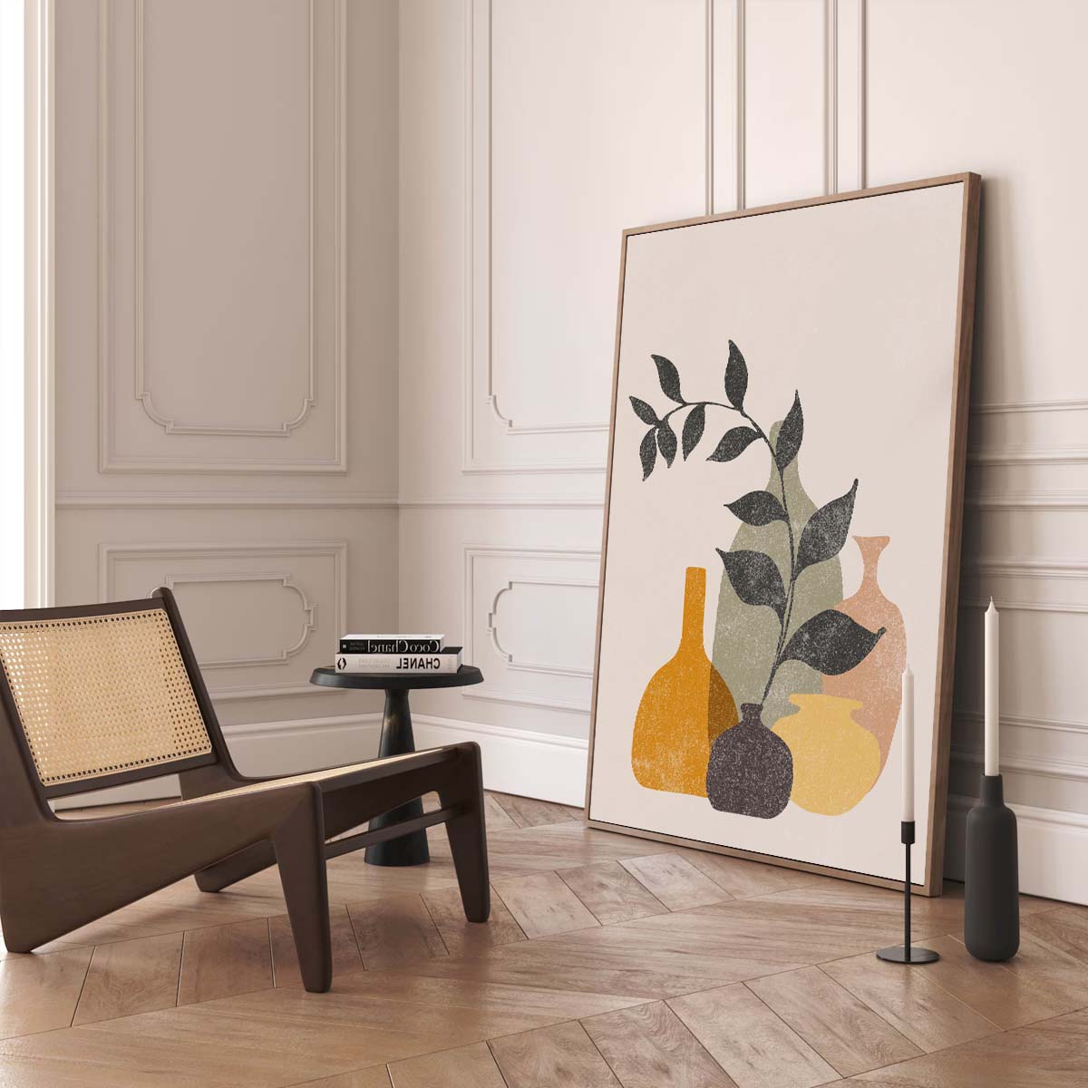 Mid-Century Vase Leaf Art Print | Boho Botanical Wall Decor